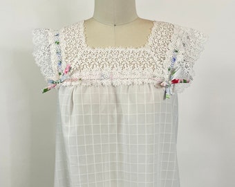 100 Cotton Nightgown White Embroidered Cotton Eyelet Lace Lingerie Sleepwear Summer Wedding Bridal Honeymoon Embroidered Cottage Chic. Ribbon Embroidered Velvet Eyeglass Case 1495. Coordinating Lanz Hummingbird Cotton Lawn Robe 54607 sold separately.